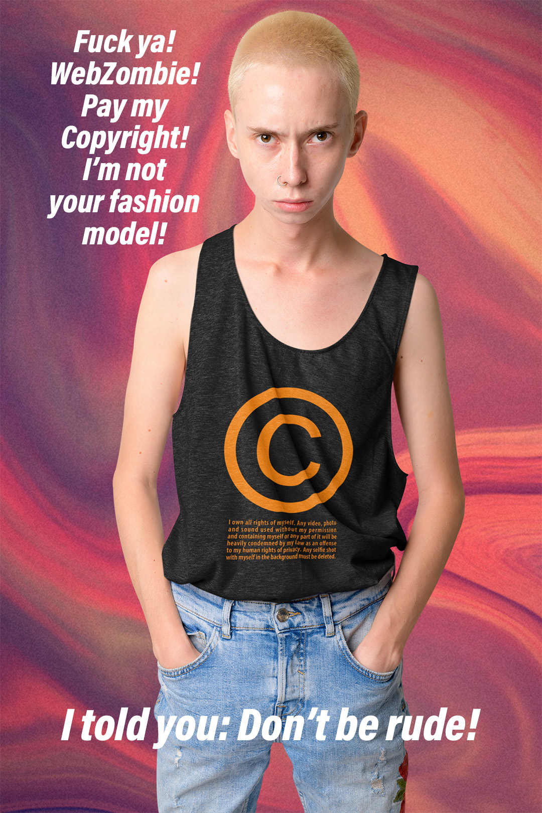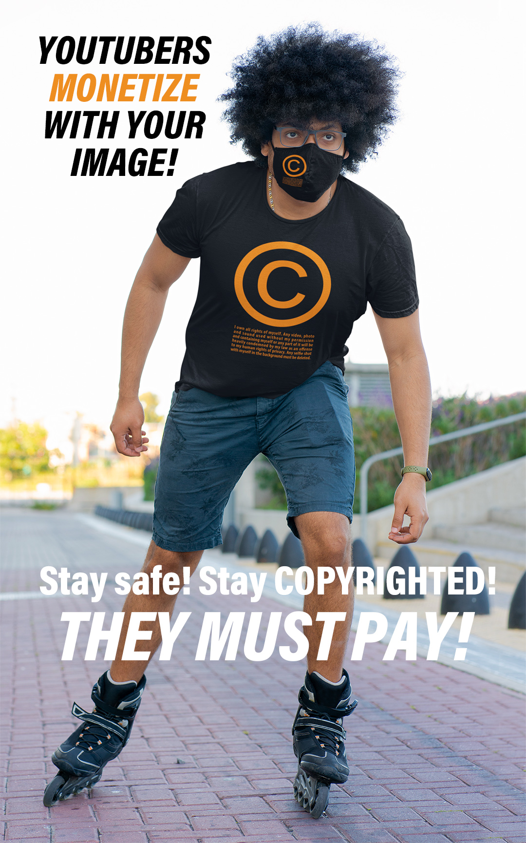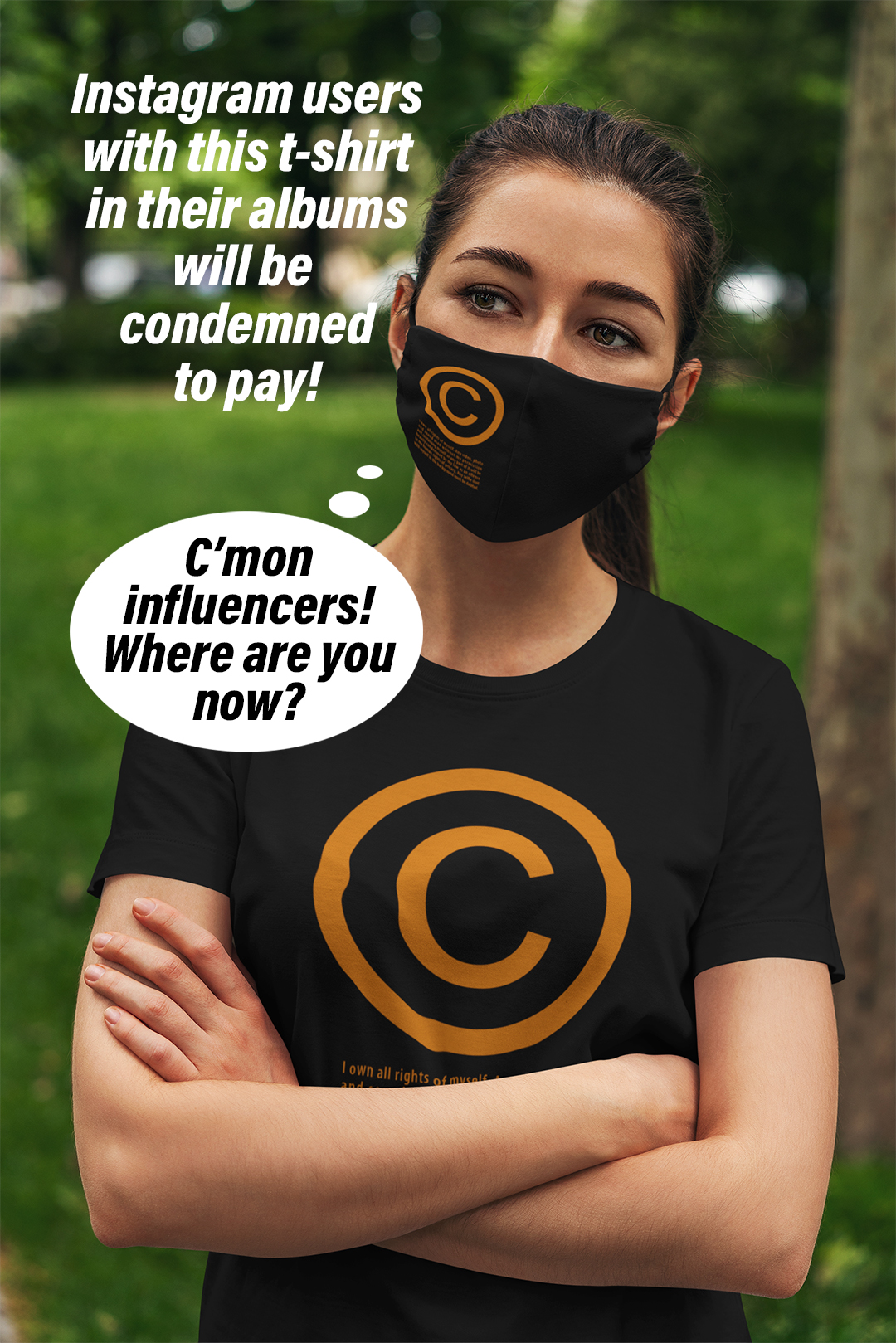 For more INFOS about privacy, photos and public recordings you can read this LINK, but remember: if you’ve got a VISIBLE © on your T-shirt, it clearly means that you don’t want to be filmed or photographed! Not for free and not for trivial reasons! (those trivial reasons are monetized on youtube). A © T-shirt is an idea to claim individual freedom in this world of webcams: a symbol.